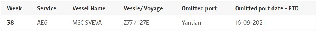 The Alliance of Maersk and MSC will also change its service coverage on the AE6/Lion service by structurally omitting the Yantian Eastbound call on 16 September.