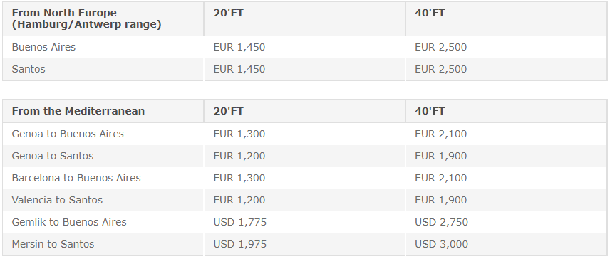 Last but not least, CMA CGM will push up its Freight All Kind (FAK) rates from North Europe, Scandinavia & the Mediterranean to East Coast South America, as follows: