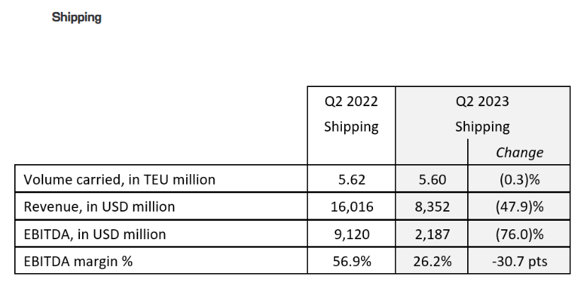 CMA CGM noted that late 2022 trends continued to prevail in the first half, with "deteriorated market conditions in the transport and logistics industry".