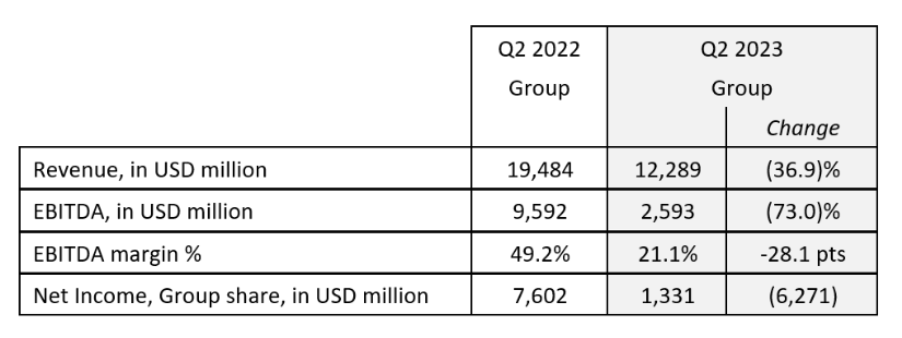 Additionally, the company's earnings before interest, taxes, depreciation and amortization (EBITDA) reached US$2.6 billion, translating to a 73% year-on-year decline.
