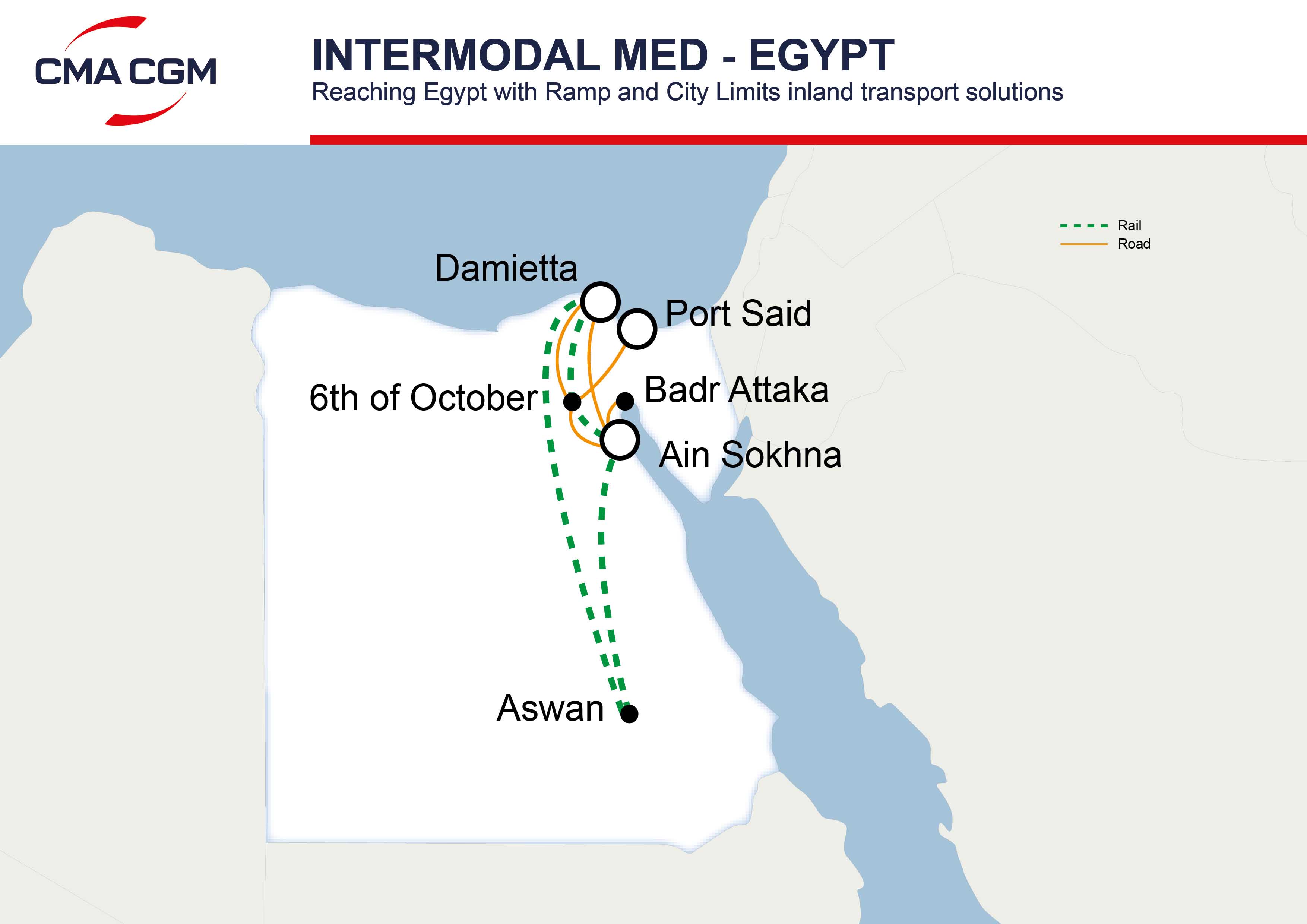 Firstly, CMA CGM has introduced its new rail product connecting the world from/to Aswan, Egypt with a weekly train through Damietta and Ain Sokhna corridors connecting with Med Lines and Rex.