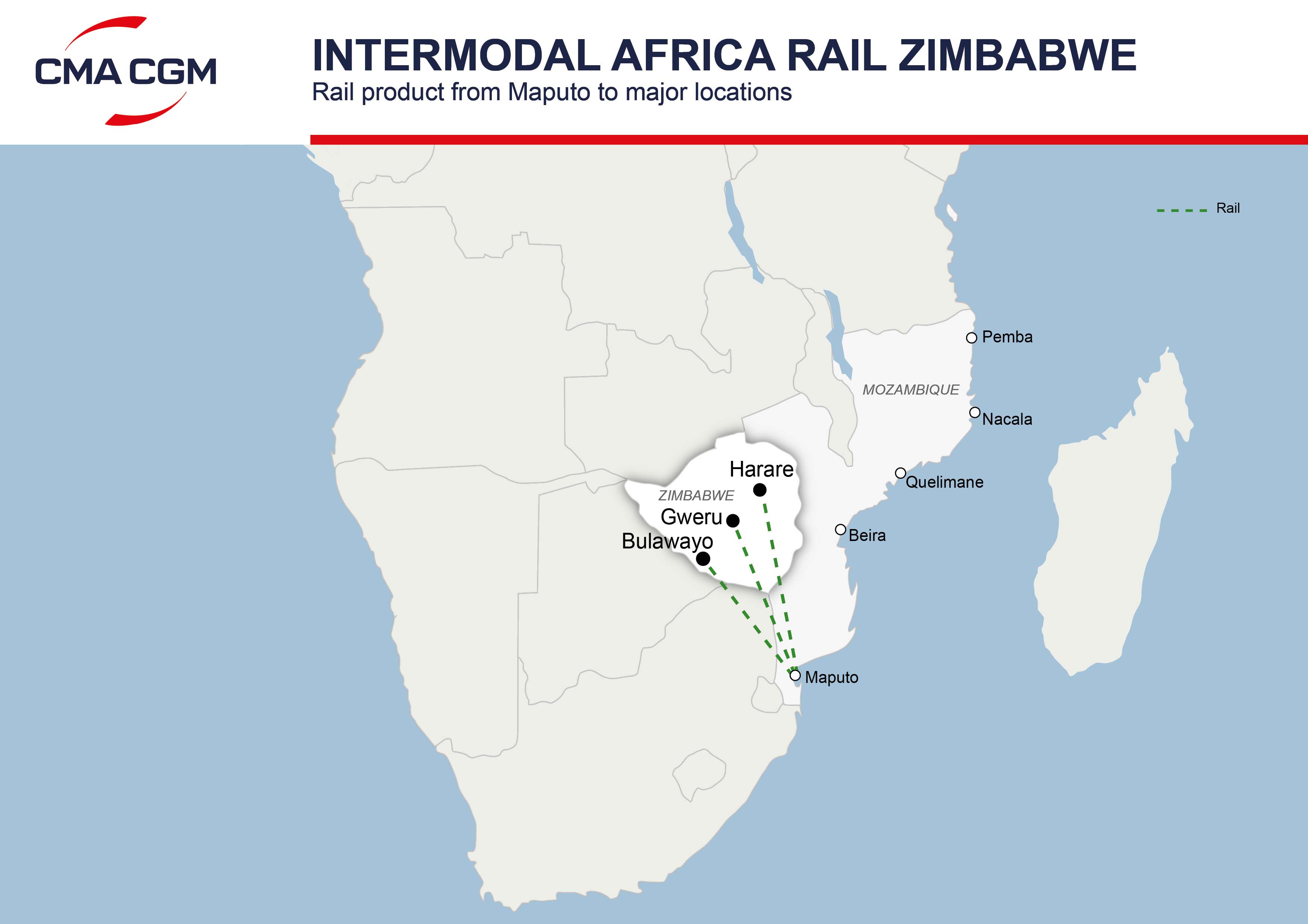Furthermore, the Marseille-based container company has announced that in complement to its current rail service Beira, Mozambique > Harare, Zimbabwe, it will offer a new product with a weekly departure from Maputo, Mozambique on Mozex service to Ramp Harare, Bulawayo and Gweru in Zimbabwe.