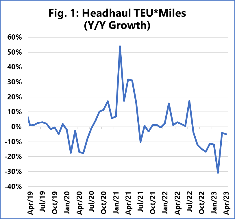 This is corroborated by the fact that the TEU*Miles growth minus the Far East to North America trade rebounded to positive growth in March and stayed there in April 2023 as well, according to the report.