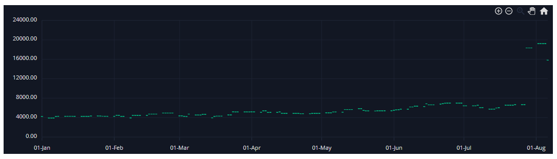 Last but not least, Freightos Baltic Global Average Freight Rate Index (FBX) is a significant illustration of the consistent freight increase, as it has noted 19,237.18 points in the first days of August (2-5/8), compared to 2,764.19 - 2,984.92 points during the corresponding period of last year.
