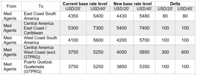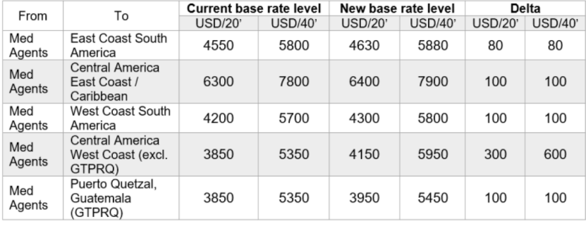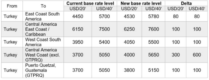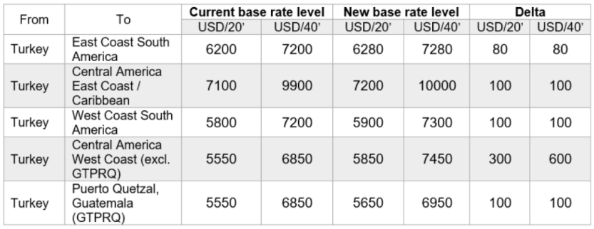 Last but not least, Hapag-Lloyd will raise its prices for sailings from Turkey to Latin America, as follows: