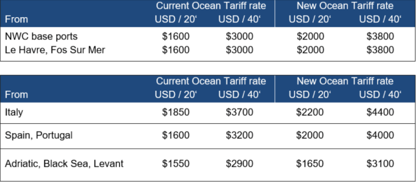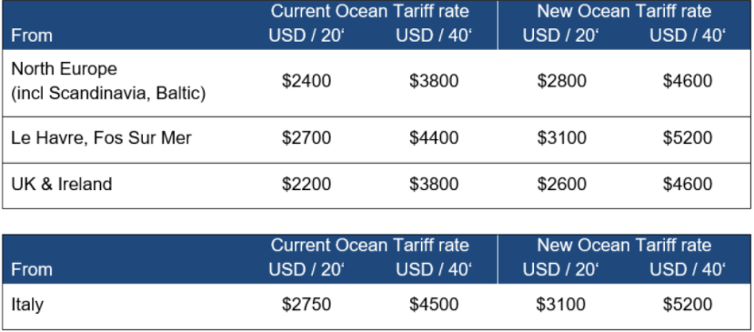 Hapag Lloyd has announced new rates for Australian destinations that will take effect in the next months.