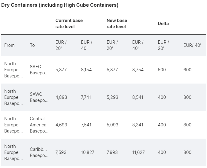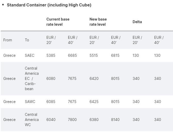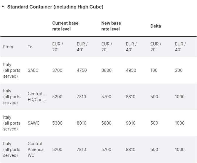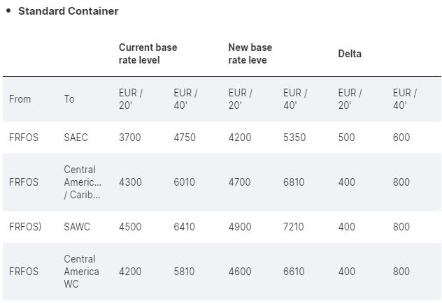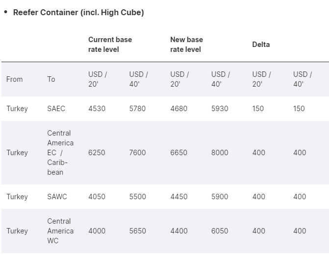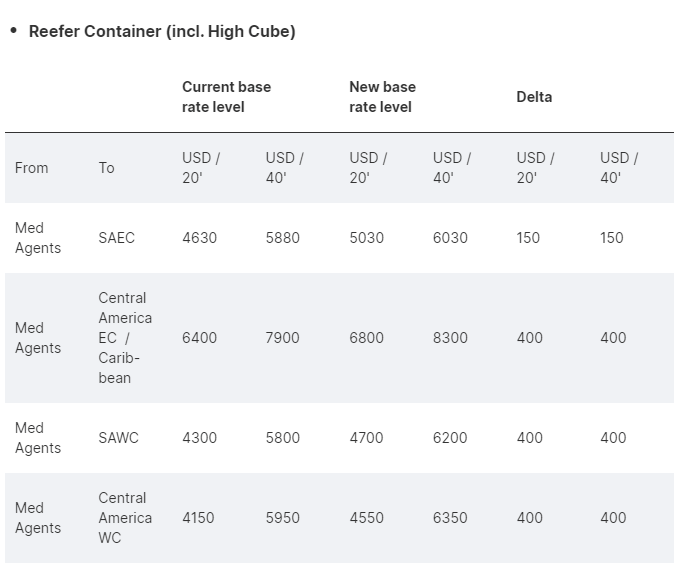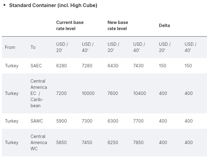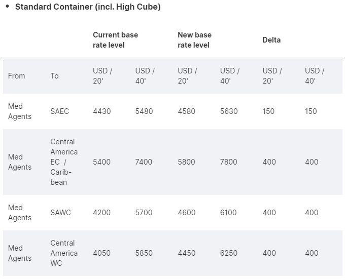 The German container shipping company Hapag Lloyd has announced the implementation of several ocean tariff rate increases for sailings destined to ports of Latin America. The updated prices will be applicable from 1 October to all 20' and 40' standard, reefer and high cube containers.