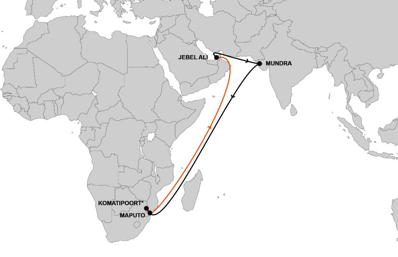 The first westbound voyage is expected to sail from Jebel Ali on 4 June with an estimated arrival at Maputo on 19 June.