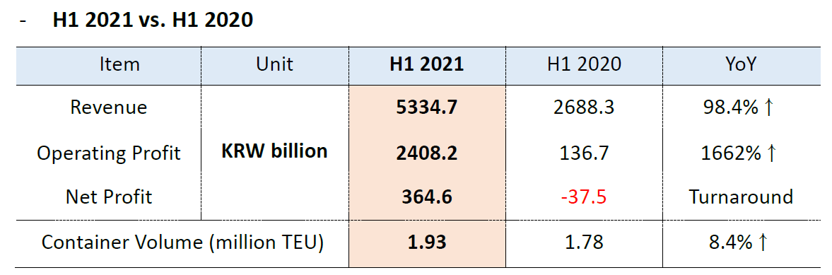 HMM has reported its highest operating profit in its history of US$2.06 billion in the first half of 2021 with a margin of 45.1%, while the companys revenue almost doubled to US$4.56 billion, compared to 2020 H1.
