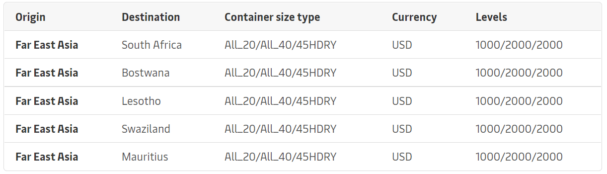 In particular, Maersk will implement a PSS to all 20', 40' and 45' dry cargoes travelling from the Far East to the ports in South Africa, Botswana, Lesotho, Swaziland and Mauritius.