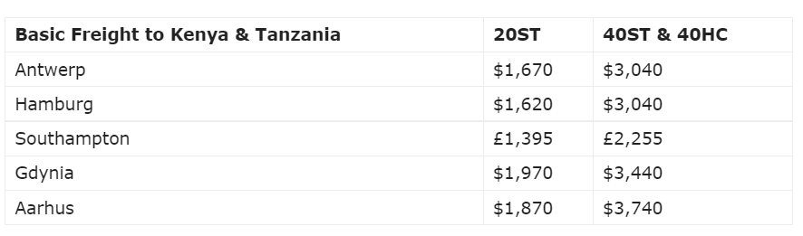 At the same time, CMA CGM will apply the following Freight All Kinds (FAK) rates from five ports in North Europe to Keny and Tanzania for dry Out of Gauge (OOG) and breakbulk cargo: