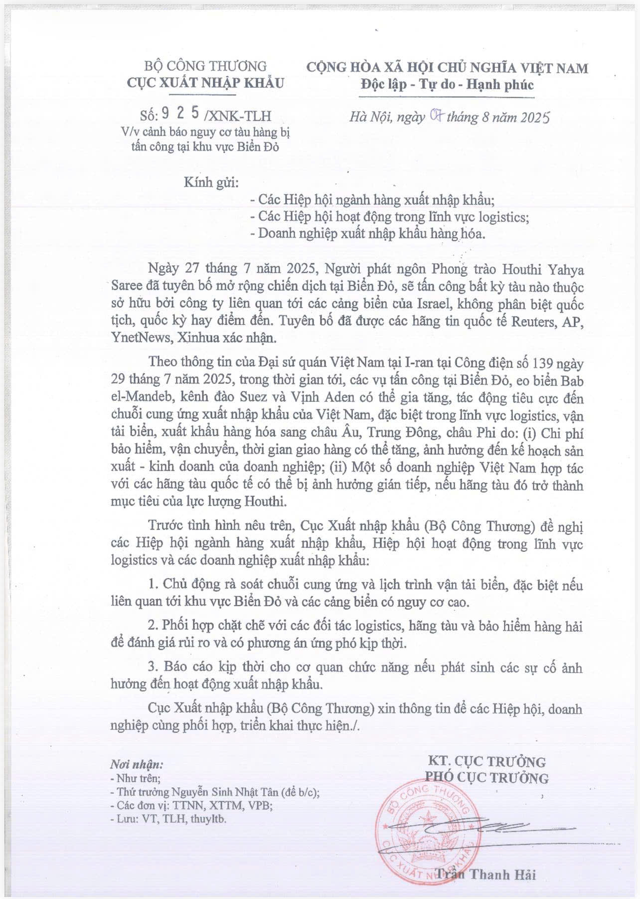 We would like to inform you of recent developments that may impact international shipping operations and the global supply chain, particularly for shipments from Vietnam to Europe, the Middle East, and Africa.