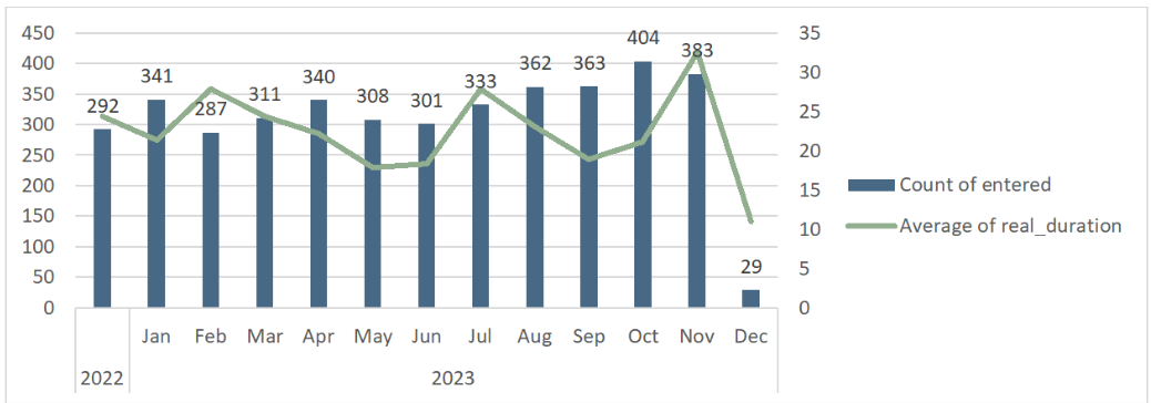 Due to the peak of shipping vessels entering the anchorage concluded in October, there is a bottleneck in November. As shown in the graph, in October, 404 vessels entered both anchorages resulting in an average of 32.55 hours waiting at anchorage in November, making it the peak anchorage waiting time through the year. Source: VesselBot