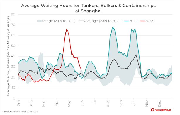 "As shops reopened on 1 June and people returned to offices, parks and markets, there are many encouraging signs of normalisation," commented VesselsValue, adding that "Factory activity in China’s largest city shrank less sharply in May than in April, though it was still the second sharpest monthly slump since February 2020, in the initial stages of the Covid-19 pandemic."