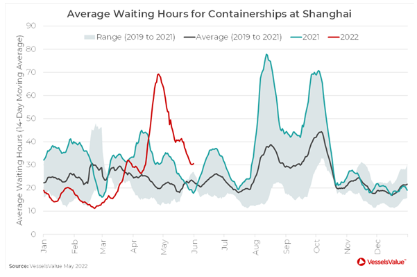 As Shanghai springs back to life after two months of lockdown, congestion at the port is almost back to normal, according to the latest data from VesselsValue.