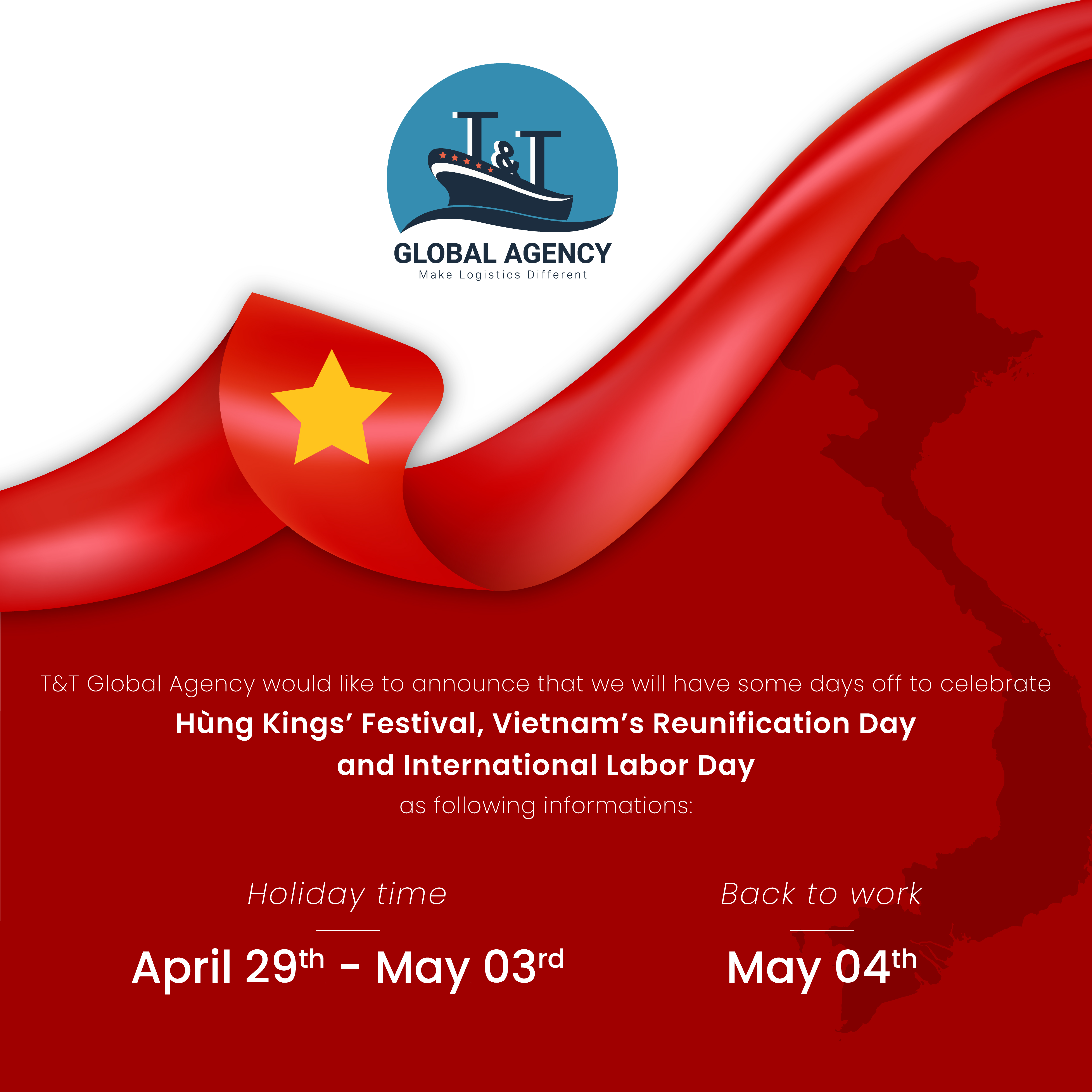 T&T Global Agency hereby would like to announce our schedule for Hung Kings' Festival, Vietnam Reunification Day and International Labor day 2023 as follows: