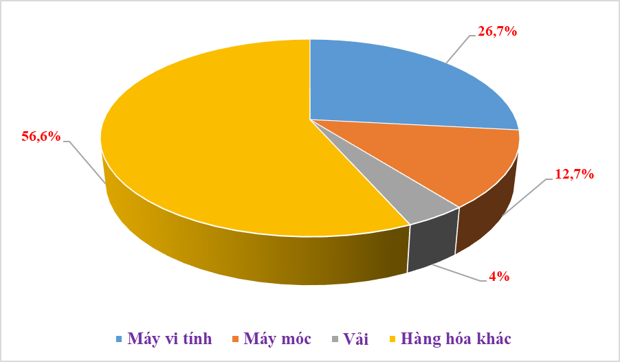 3 nhóm hàng nhập khẩu có kim ngạch lớn nhất là máy vi tính, sản phẩm điện tử và linh kiện; máy móc, thiết bị, dụng cụ, phụ tùng; vải các loại.