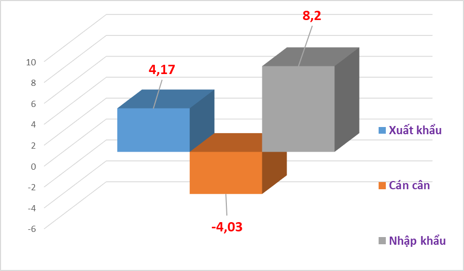 Chiều ngược lại, nhập khẩu của Việt Nam là gần 8,2 tỷ USD, tăng 5,5% so với cùng kỳ 2021.