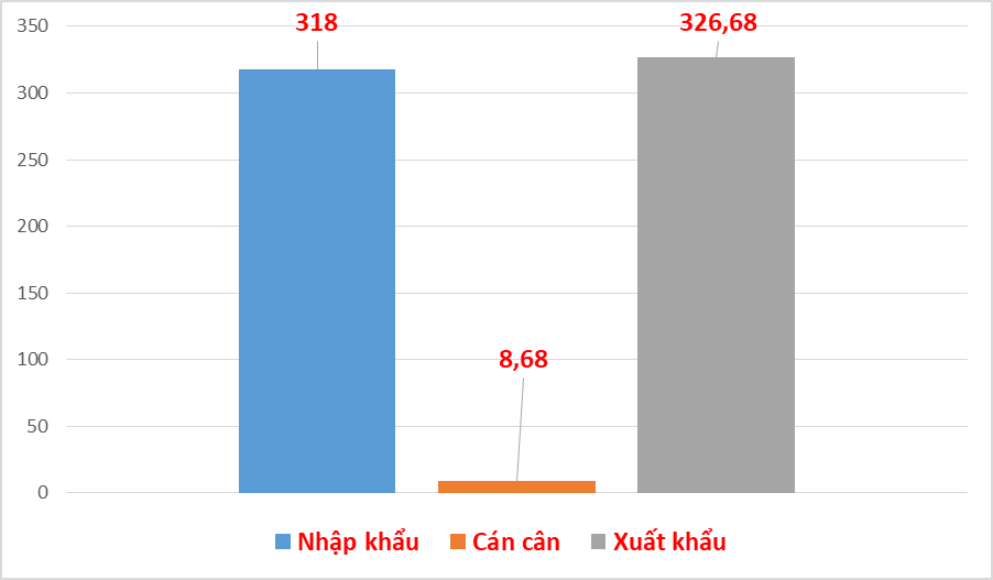 Tính chung từ đầu năm đến 15/11, tổng kim ngạch xuất nhập khẩu của Việt Nam đạt 326,68 tỷ USD, tăng 14,83% so với cùng kỳ năm ngoái, tương đương kim ngạch tăng thêm 42,2 tỷ USD (cùng kỳ năm ngoái đạt 284,48 tỷ USD).