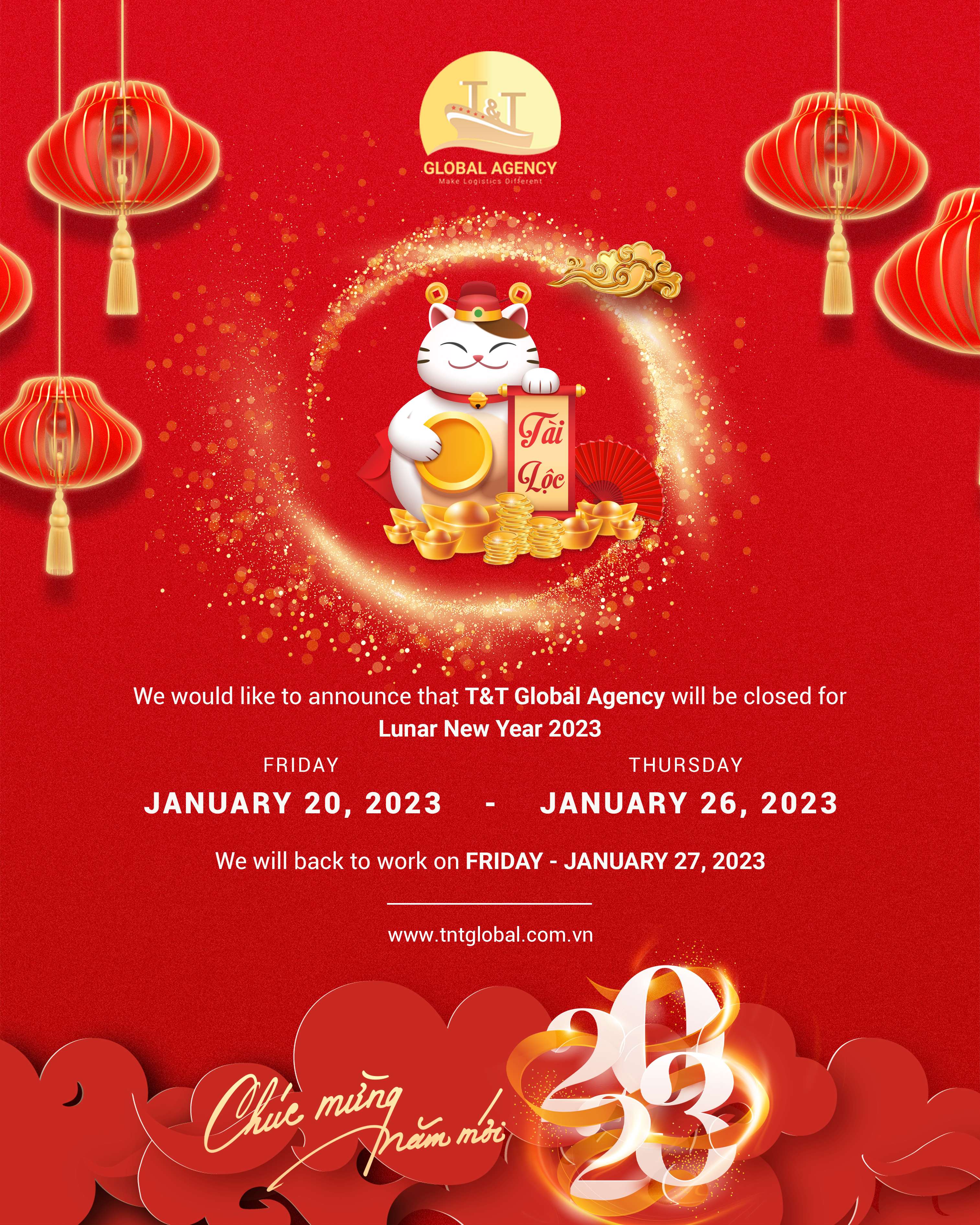 T&T Global Agency thông báo lịch nghỉ Tết Quý Mão 2023:
